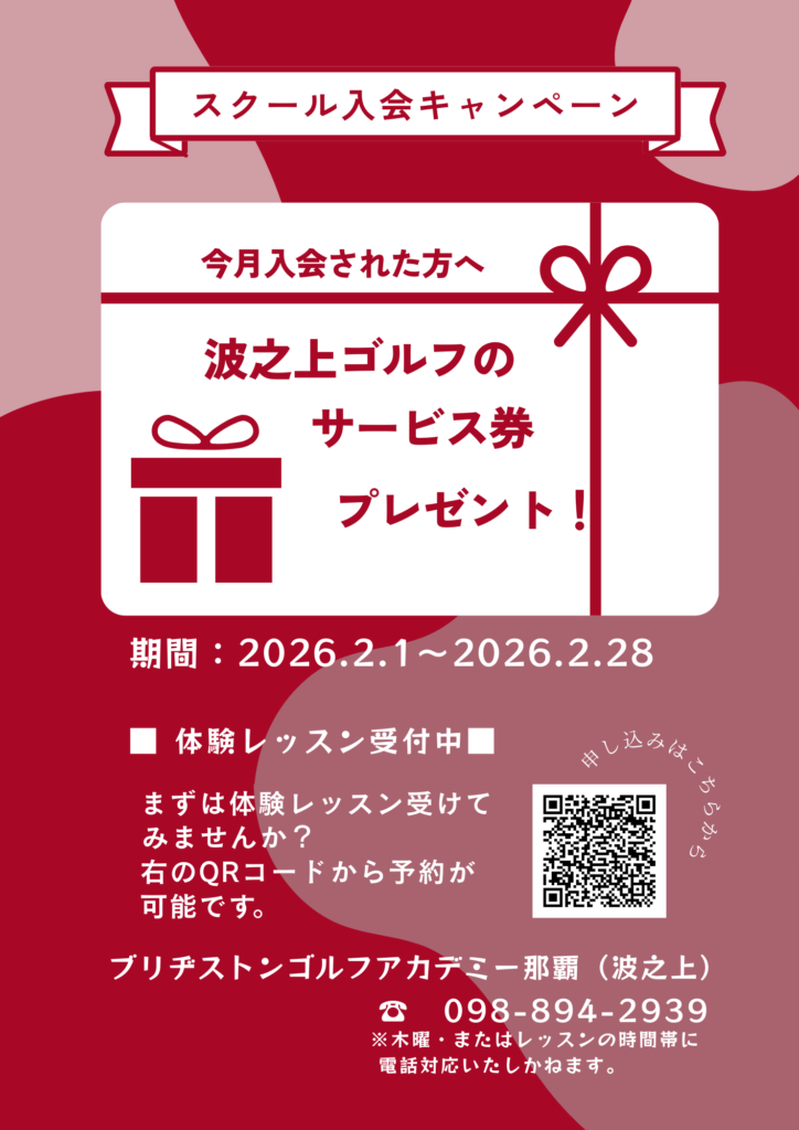 ※ラウンドレッスン、コースレッスン、コンペなどのイベントはBS那覇校のスクール生優先とさせていただきます。