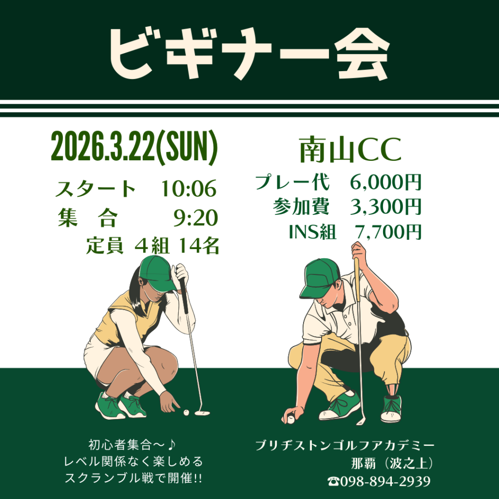 ※ラウンドレッスン、コースレッスン、コンペなどのイベントはBS那覇校のスクール生優先とさせていただきます。